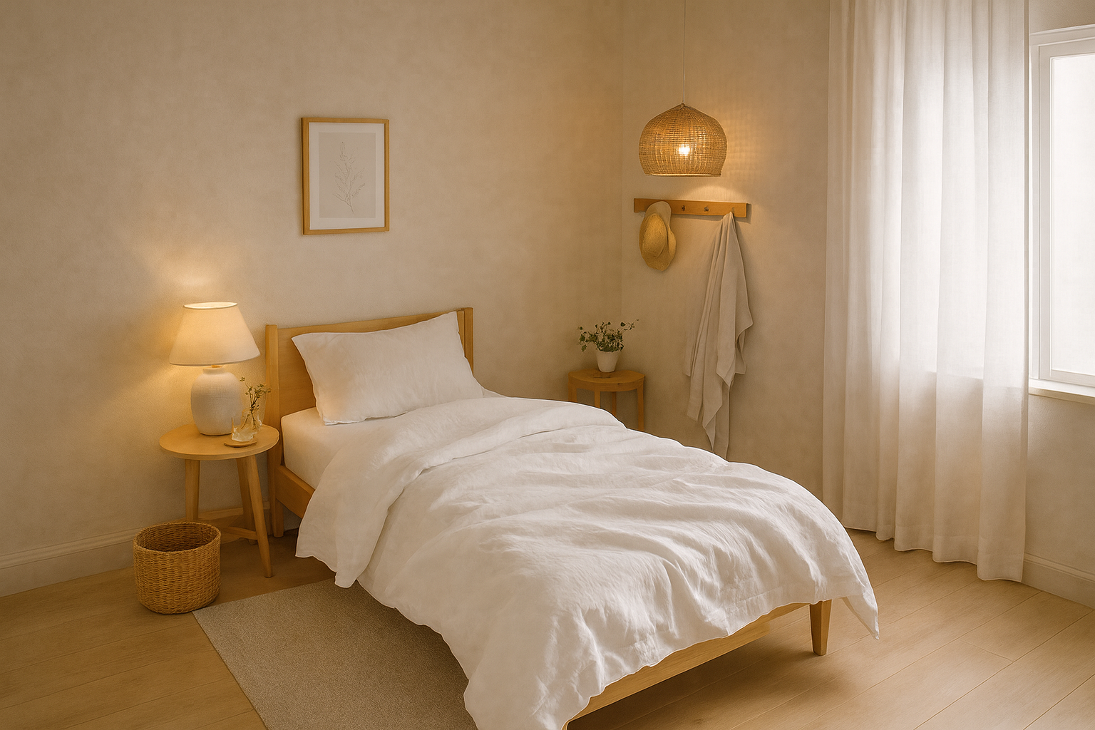 リネンは外気に触れると少し冷たく感じますが、布団の中で密閉して使用すると体温で自然と温まり、その状態を保ってくれます。とくに麻30番手の中厚地なら、冬でも安心して使える保温力があります。